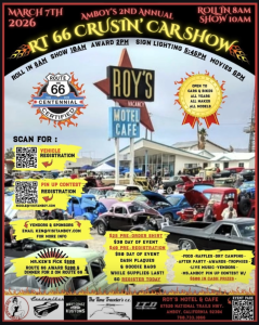 >>> Celebrate 100 Years of Route 66! Join the fun at the 2nd Annual Roy’s Route 66 Cruisin’ Car Show in Amboy, California — one of the most iconic stops on the Mother Road!