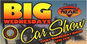 >>> Big Wednesdays CarShow. Every Wednesday night from 5:00pm-7:00pm. Show and Shine. Muscle Cars • Customs • Classics • Rods • Bikes • Trucks. Raffles and prizes. Fun for the entire family. Presented by MAC Speed and Custom