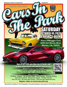 11th Annual Cars in the Park – approximately 200 cars with all grass parking. Included in entry fee is one catered BBQ lunch, one poker walk play, one participant only raffle ticket, and free coffee & donuts at check in. 40 Sponsor choice awards and 10 Major Awards. NEW THIS YEAR – Swap Meet with 50 spaces only @ $25 per space but must be pre registered – no day of event entrants, no exceptions!
