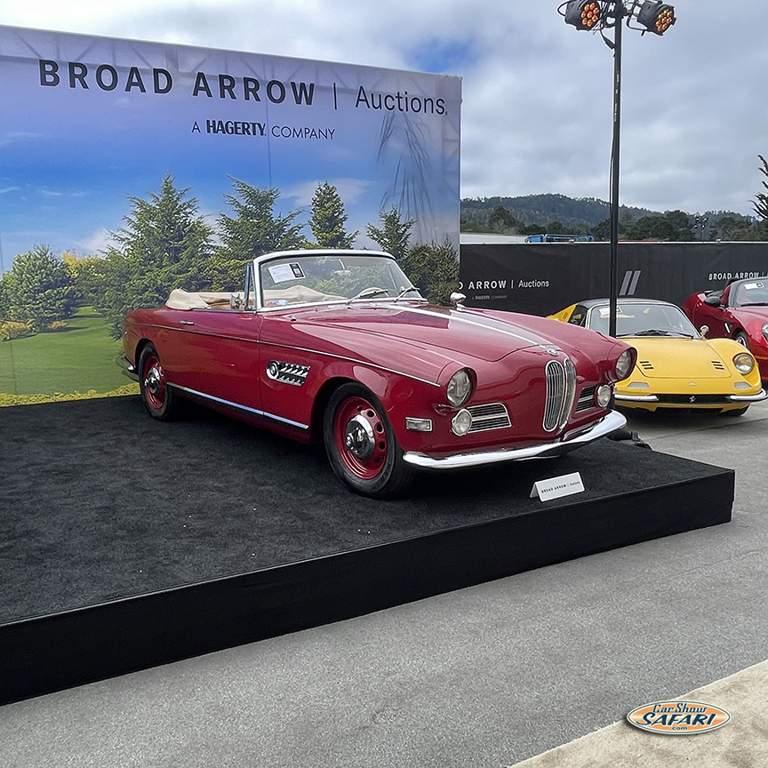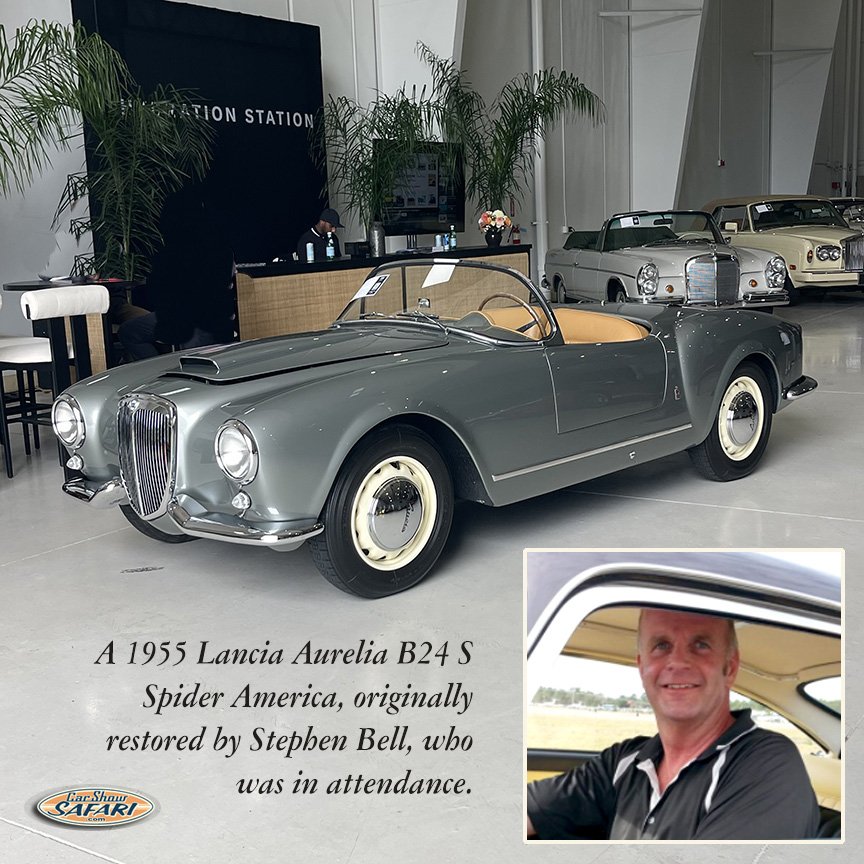 As is often the case, a number of classic and exotic designs that were not part of the auction’s consignments were scattered among the cars in the parking area. They were an excellent preview-to-the-preview, helping visitors to enjoy passing the time as they awaited all too briefly for comfortable and courteous transport by tram from the parking area to the event’s entrance.