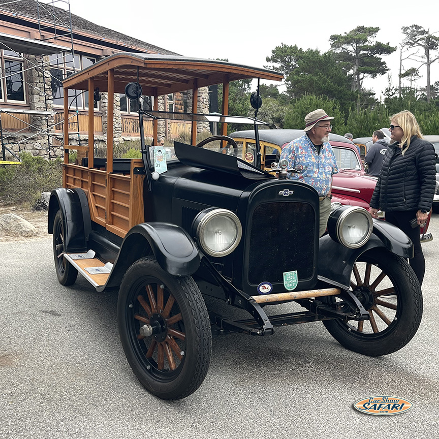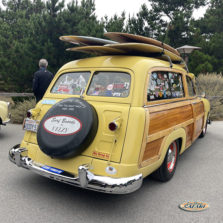 The arrangement of the show’s participating woodies on a circular road that rings the property, with their classic frames of maple or ash and panels of mahogany or birch, were in sync with the hotel’s overall ambience. Naturally, a large number of woodies were marked and/or accessorized in ways that clearly illustrated their status as iconic symbols of 1950s-1960s American surf culture. In almost all cases their owners were seekers of the perfect wave in that long-ago time and would happily share vignettes of their youthful beach life at any opportunity. However, the plainer woodies, led by a 1926 Ford Model T Station Hack and progressing to several late 1940s makes and models, epitomized a rural elegance associated with sprawling country estates prior to and just after World War II.